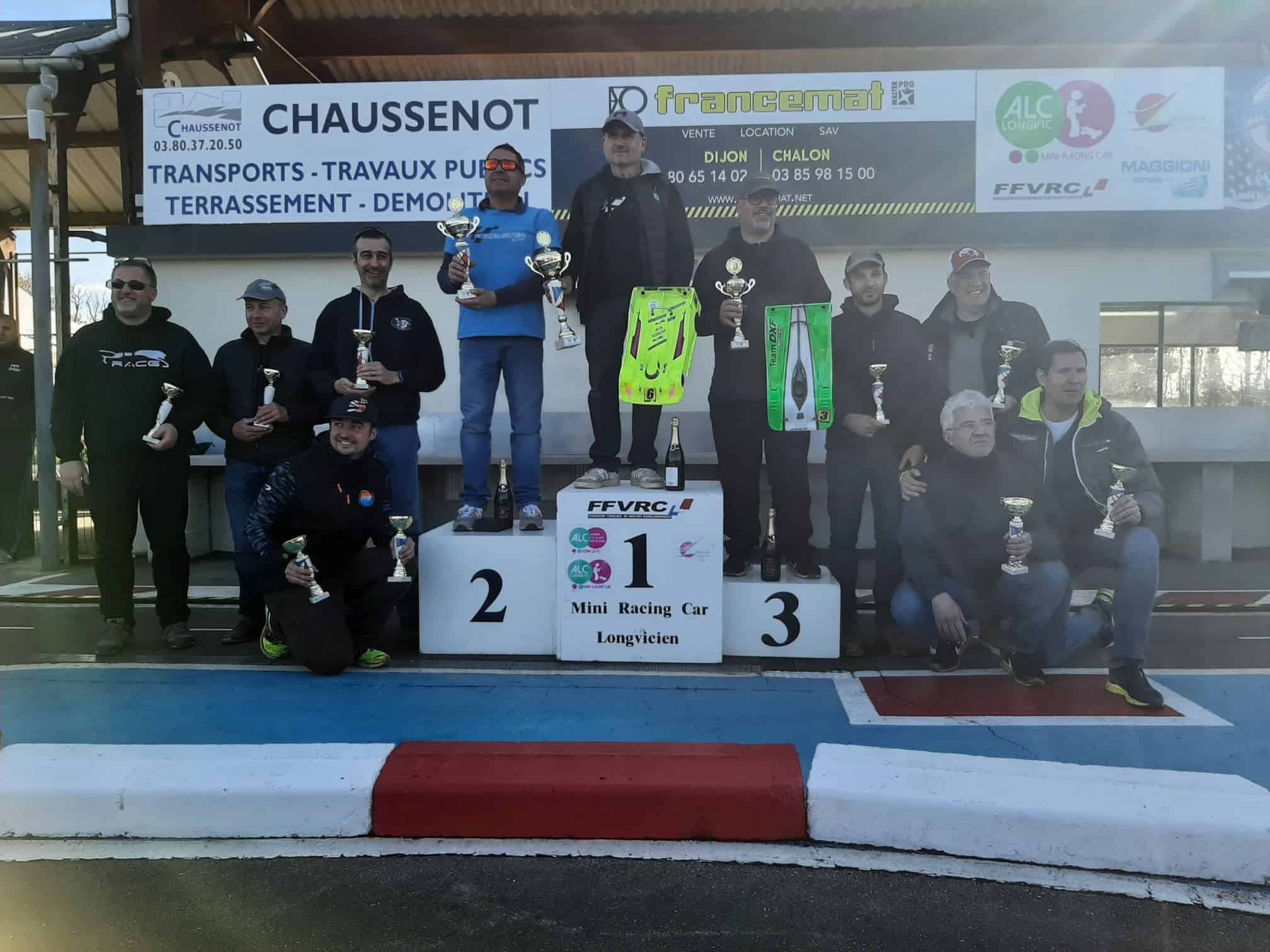 La pole position réalisée à l’issue des qualifications par Maxime Pouffier. Ensuite nous avons pu assister à de belles remontées, et c’est notre pilote du club de Longvic Maxime Pouffier qui remporte cette finale de Championnat de France à l’issue des 30 minutes de course, toutes nos félicitations, suivi en deuxième position par Sacha Monteil et en troisième position par Eric Lecour. Un autre pilote du club a réussi à accéder à cette finale, Dominique Blanc qui termine à la neuvième place. William Leroy terminera trente-troisième et Xavier Guichard cinquante et un. Bravo à tous.